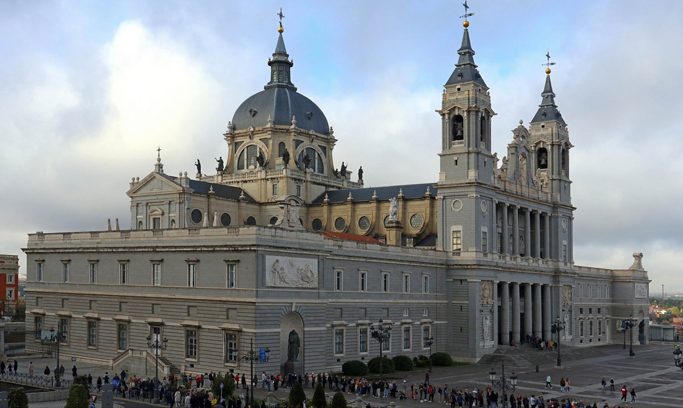 After about a 30-minute walk, we arrived at a large grouping of very important appearing buildings. The first of these was the Almudena Cathedral (Santa María la Real de La Almudena) and, although it was still early in the day, there was already a long line of people waiting outside for a tour.