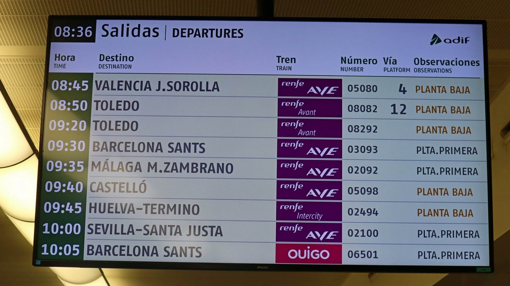 Once underway the ride was smooth and relatively quiet. There were some entertainment screens with shows in Spanish and, in the front of the car, a sign showing, among other things, the current speed of the train. Most of the time the speed was between 290 and 300 kph (about 183 mph) and I saw it hit 300 one time.