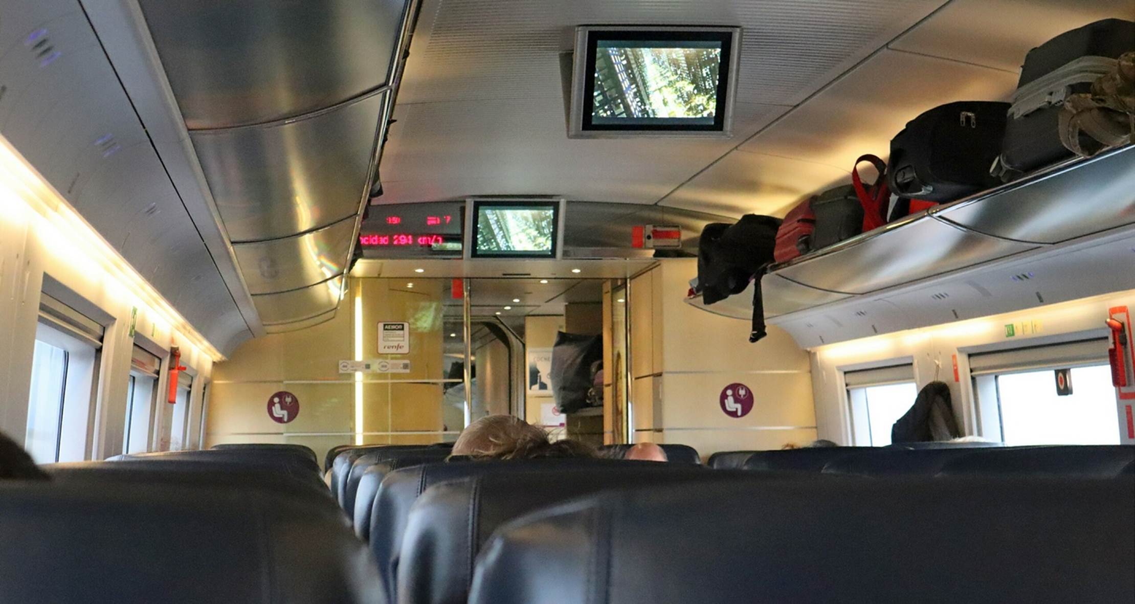 We got through the check-in process and security (not quite as severe as when flying) and settled in for the 90 minute wait for our train. We had to manage our own luggage this time and that was no problem for us, but some people had very large suitcases or multiple suitcases to manage. The luggage would become more of an issue in a few minutes. We found places to sit and spent the time reading and occasionally getting up to wander around the terminal. When the time came for our train, there was some confusion as to which platform it would depart from, but that got sorted out when the train actually rolled into the station. We filed down the ramp to the platform with our luggage under the assumption (from Andrea) that our luggage would be stored in an area of our train car with us. One of the train/station staff informed us that, no, our luggage would go in a separate baggage car and we had to organize and load it. We soon formed sort of a “bucket brigade” passing bags to Andrea who was inside the baggage car, shoving bags up into shelves. We got it all loaded and to our assigned car and seats with a couple of minutes to spare.
