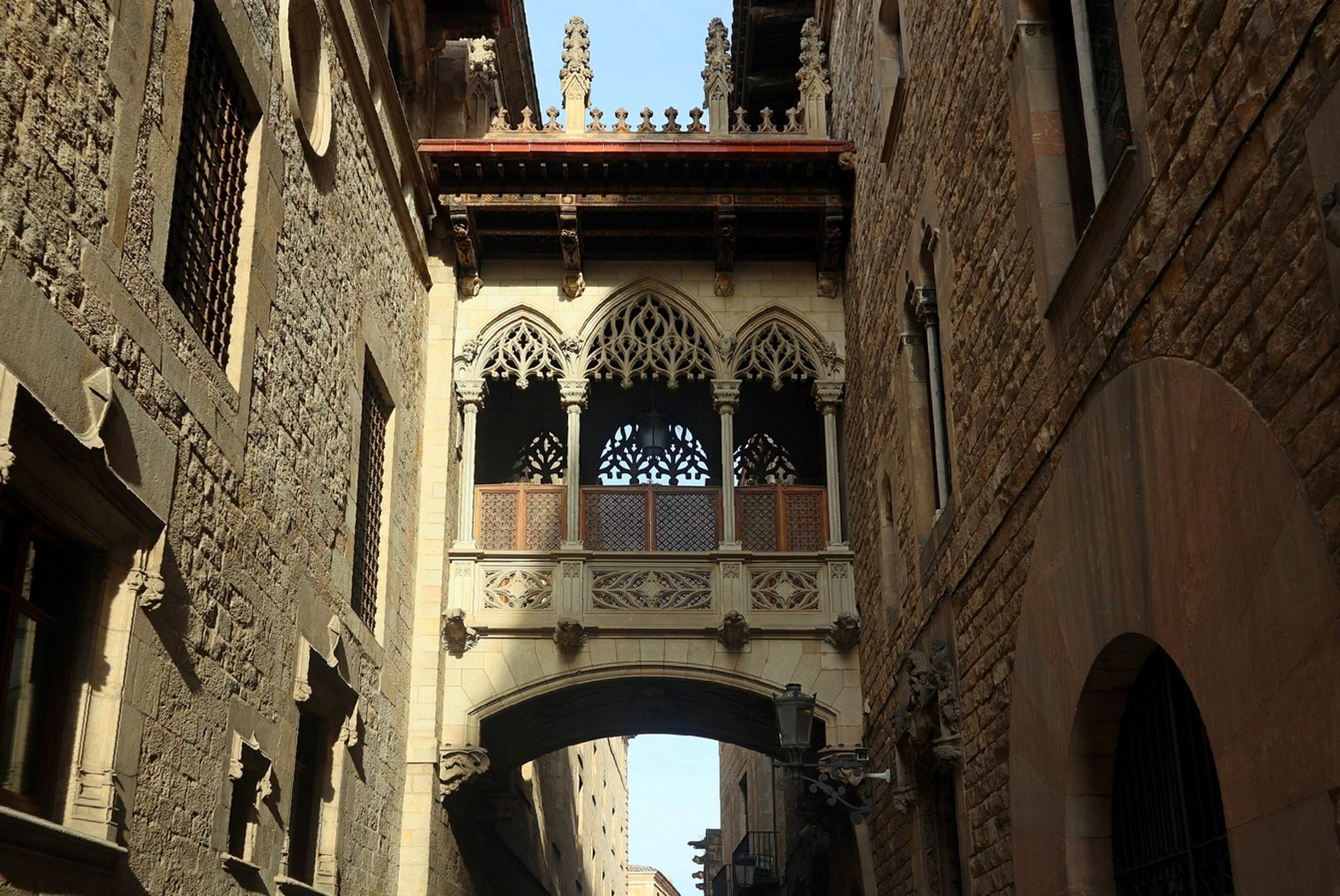 Although Barcelona is rightly proud of its home grown architects, we did see frequent examples of styles borrowed from elsewhere. There were lots of classical Roman features, Moorish style arches, and French gothic styles. There were a couple of “bridges” between buildings that very much reminded me of some of the bridges between buildings and over canals in Venice.