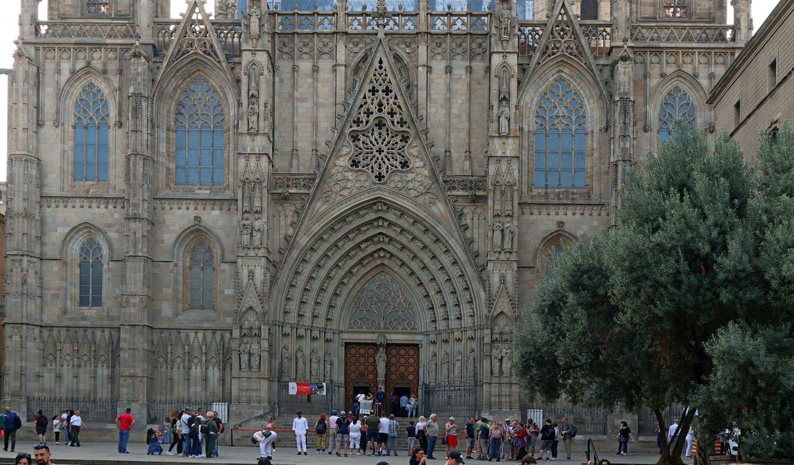 We soon came to a large open plaza (Placa Nova) in front of the Barcelona Cathedral. The good news about this cathedral is that it was being treated to a major renovation lasting several years. The bad news is that the company paying the bills (Samsung) insisted on displaying a large sign on the front of the cathedral. I am glad that the cathedral is getting a good make-over, but the sign does rather spoil the view.