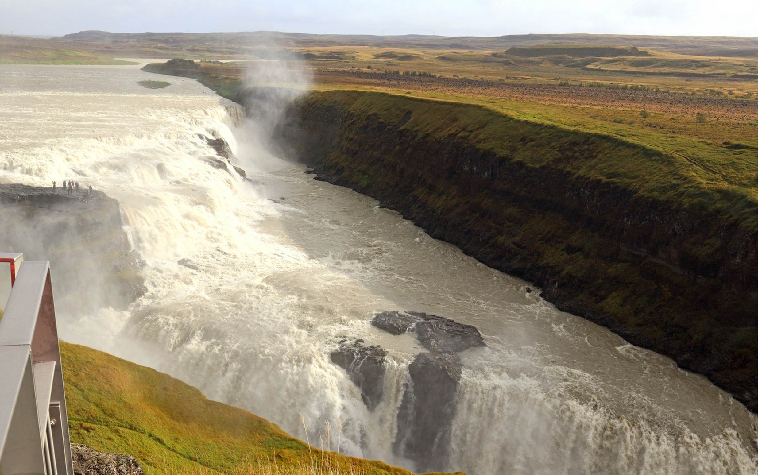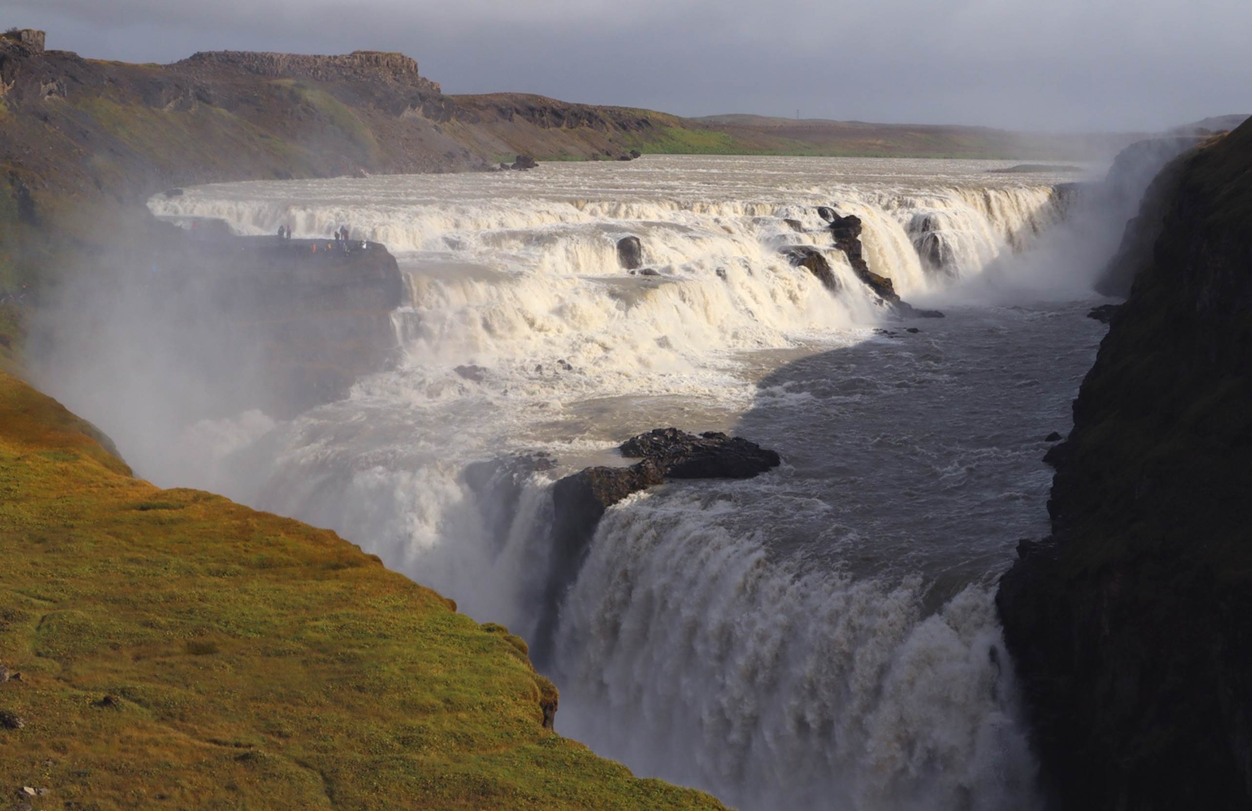 Gullfoss Waterfall: note the people on rock outcropping on the left.