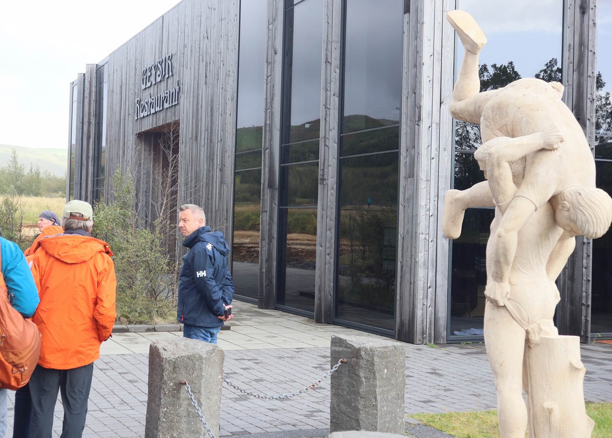 After taking in Gullfoss for a while, we retreated to the warm and dry gift shop and café to wait until time to climb back onto the bus for a short trip to our lunch stop