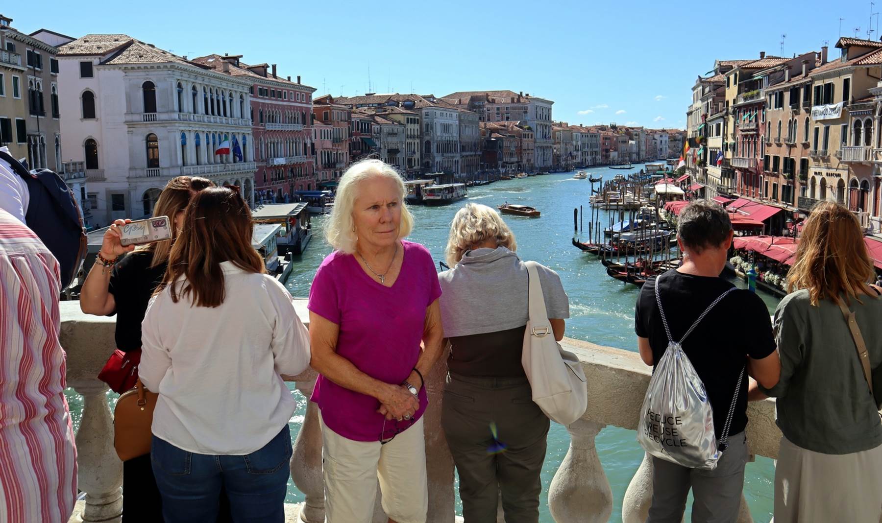 While not jam-packed, the area around the bridge seemed fairly busy and crowded to me, but local people we talked to later said that it was really not at all busy compared to in more typical (pre-COVID) days. It was interesting to watch the various kinds of boats going up and down the Grand Canal and all the small side canals.
