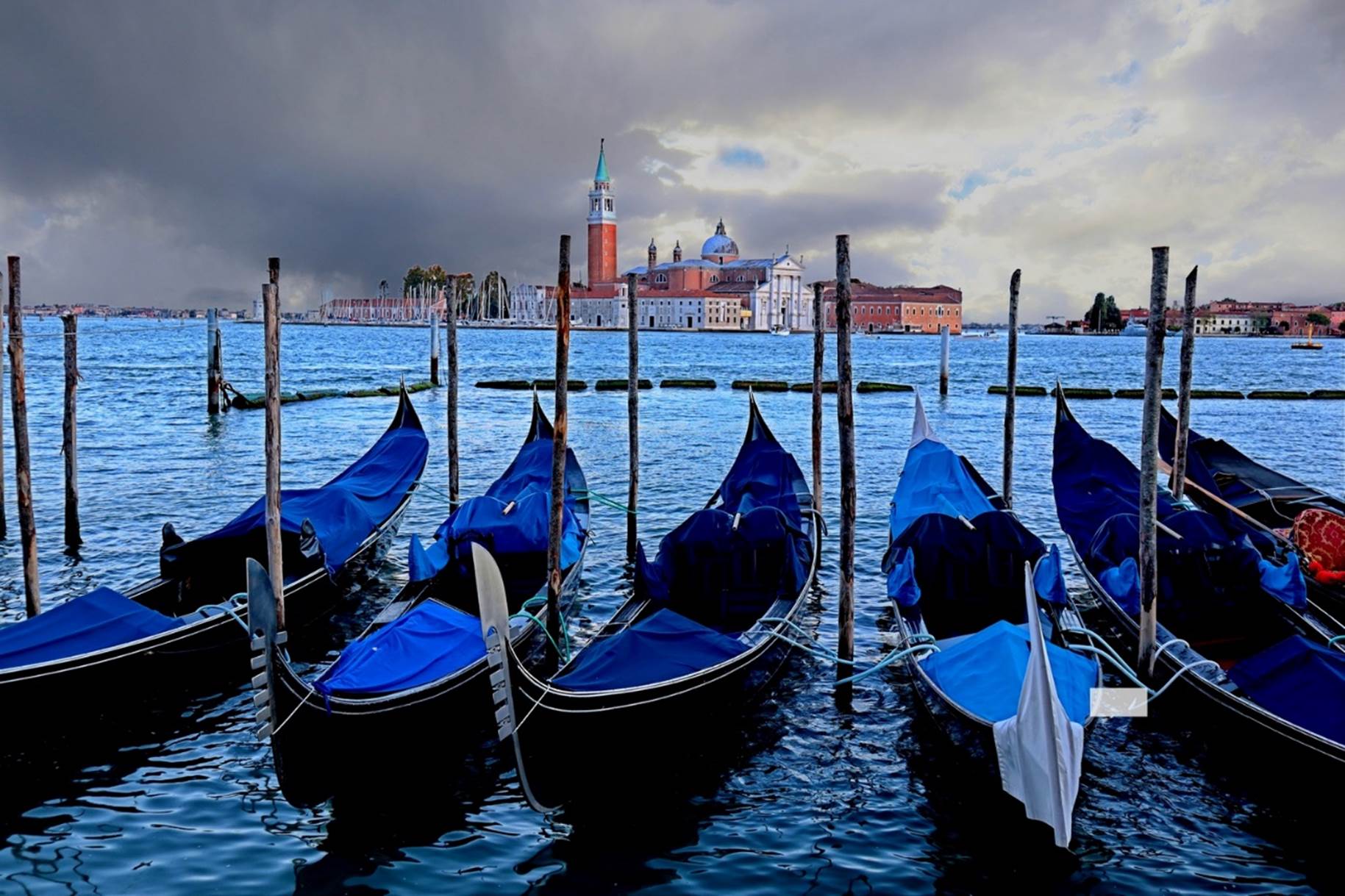 There were people dining at the sidewalk restaurants and, of course, a few tourists wandering around. When we walked over to the waterfront there were numerous gondolas just sitting there, bobbing in the small waves in the lagoon.