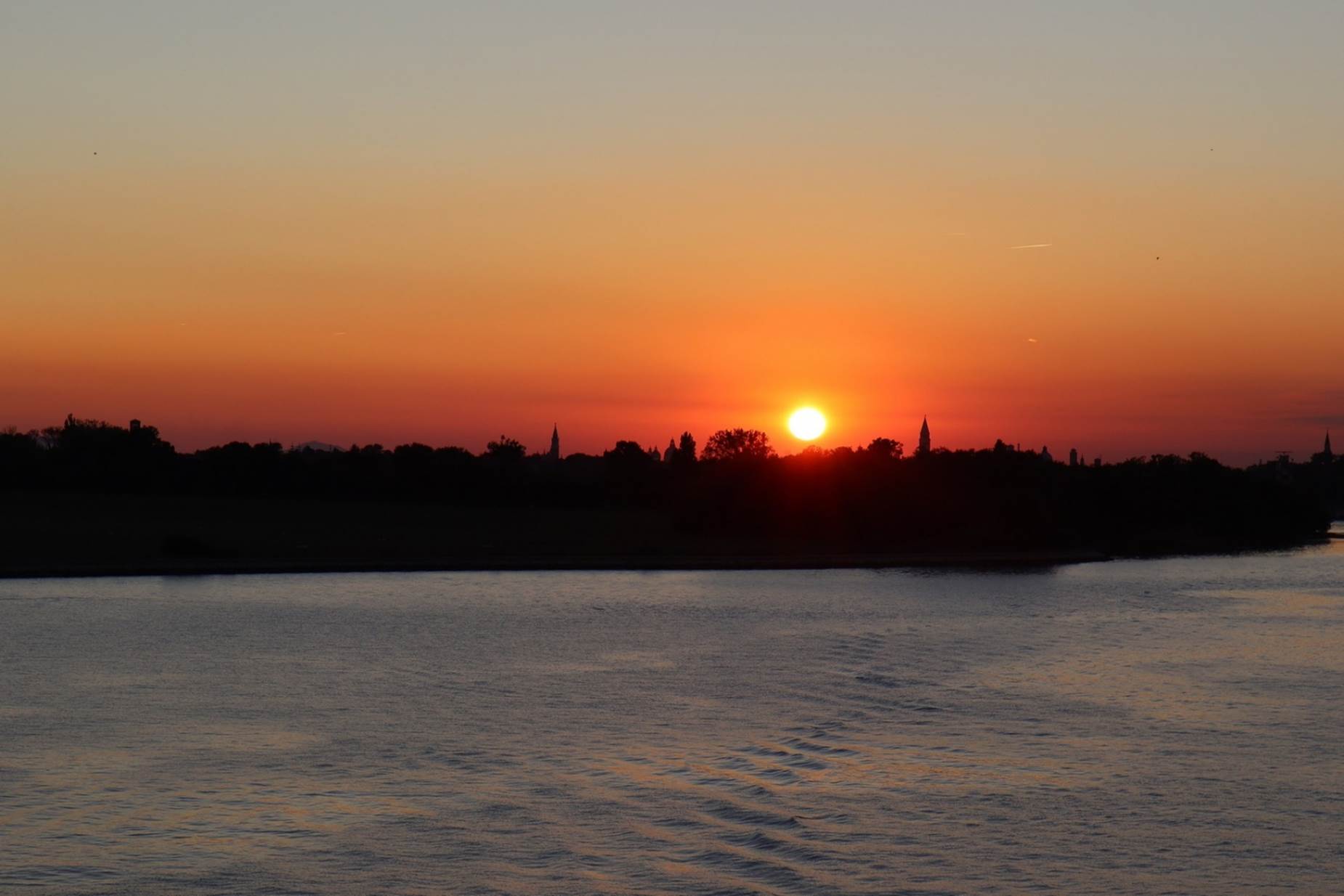 You may be able to get a better feel for how this appeared to us from this video. As we left Venice, the sun was setting behind us. I only wish that the Wind Surf could have raised the sails while passing through the lagoon: now that would have been a sight!