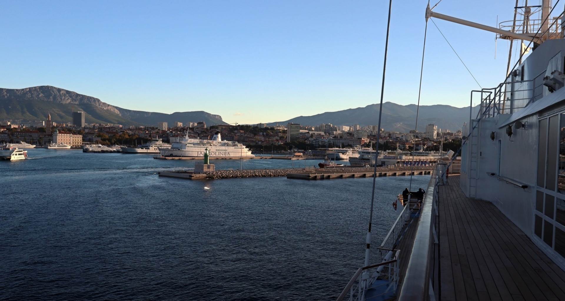 As we approached Split, we saw a rather busy harbor with multiple ferries and other ships. This was the only stop on our cruise that we actually docked, rather than anchoring and tendering people to shore.