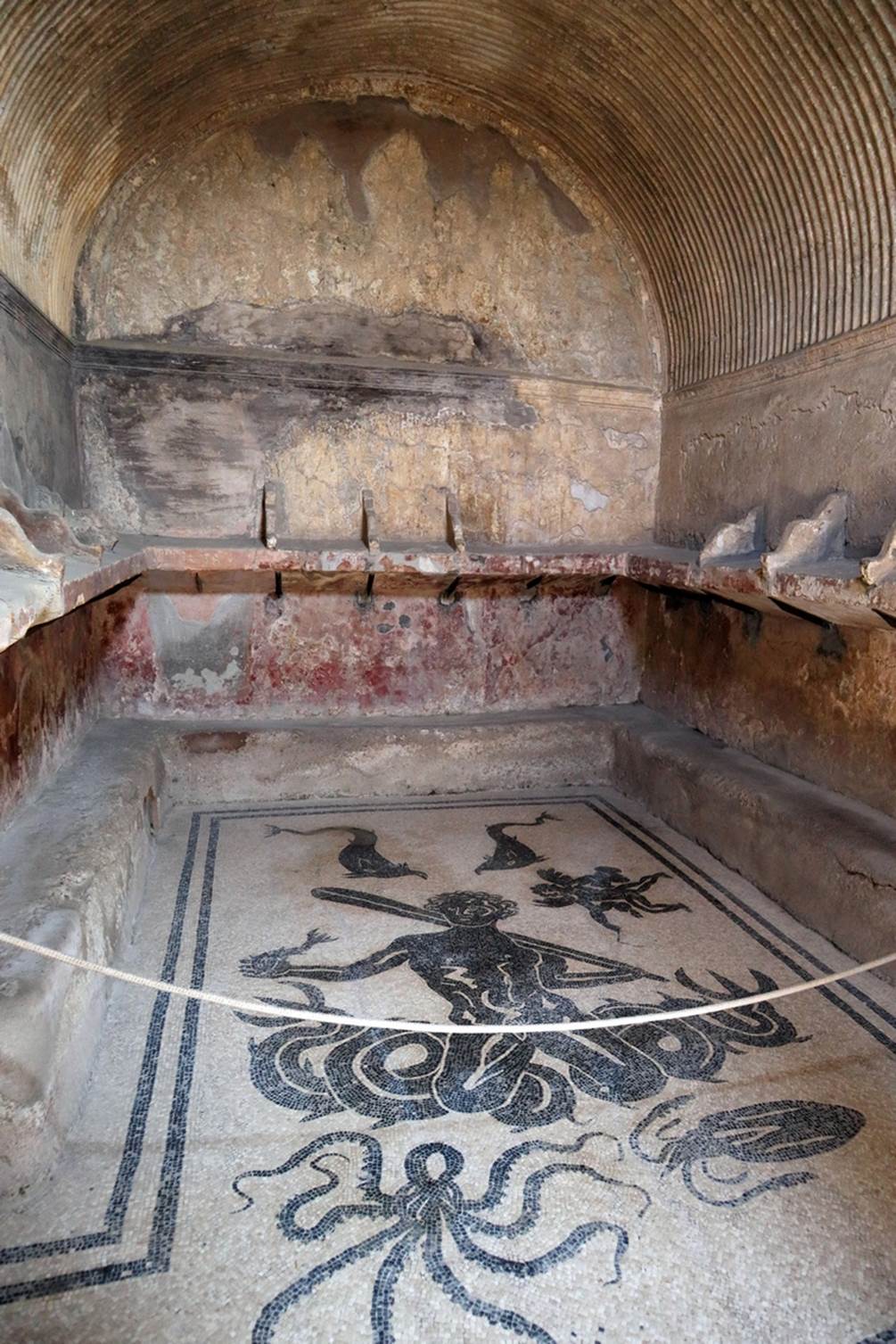 Of course, the public baths were a major feature of these ancient cities. They were decorated with artwork much like the wealthy homes. Water was heated in separate “boiler rooms” by slaves and piped into the baths.