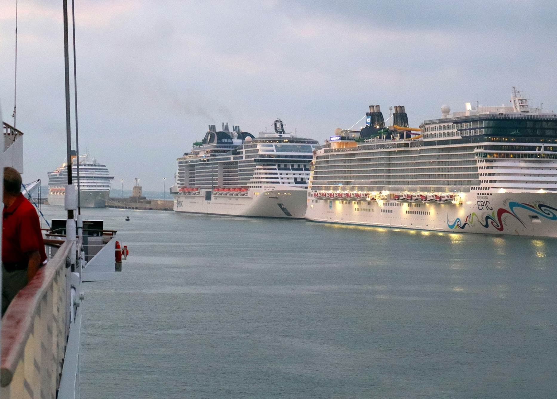 As we got up this morning, we were pulling into the port of Civitavecchia which is a little over an hour’s drive from Rome. It was a large port and there were at least seven large (much larger than the Wind Surf) cruise ships docked in the port, but very little activity. All the other ships were effectively in “storage” and awaiting the day when they could resume cruising.